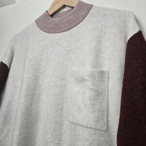 Madewell Redmond Mockneck Pocket Sweater Size S Colorblock Wool Blend Neutral
