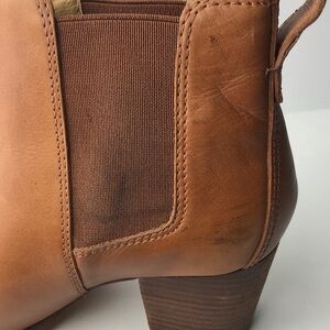 These cute booties are sleek and perfect for everyday use. They have some darker spots. Smoke free home.