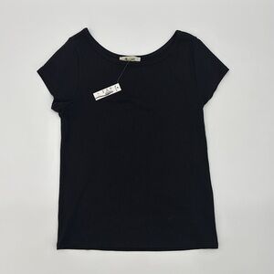 Madewell (Re)generative Cotton Ribbed Cap-Sleeve Tee Jet black size S NWT NU867