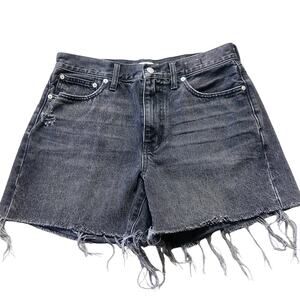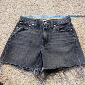 Madewell Relaxed Black Raw Hem Mid-Length Cut Off Denim Shorts Size 28✨