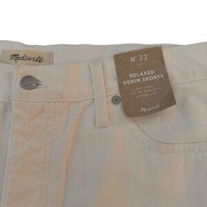 Madewell Relaxed Denim Shorts Mid Rise Button Fly Roomy Leg Women's White Shorts, Size 32 NWT
