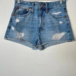 Madewell Relaxed Denim Shorts in Renfield Wash Destructed Edition in a size 23. In excellent “like new” condition. Button and zipper closure. Five pocket style. Distressed design. Material 100% cotton.