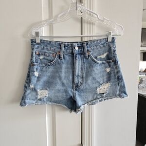 Madewell Relaxed Denim Shorts in Renfield Wash: Destructed Edition. Women's size 25. Preowned in good condition. The cut: Slouchy and relaxed, these fan fave jean shorts sit lower on the hips for a laid-back feel. The fabric: Premium 100 percent cotton denim with old-school character (perfectly placed rips make them look like a pair you've loved for years).
