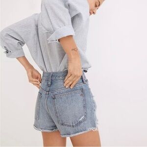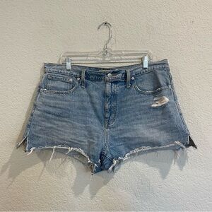 Madewell Relaxed Denim Shorts with Factory Distressing in excellent used condition. Split hem by design.