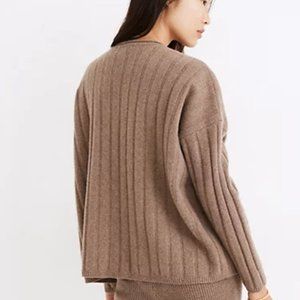Madewell (Re)sourced Cashmere Stitched-Rib V-Neck Sweater in heather mink color. Made of our superlush (Re)sourced recycled cashmere and merino yarn (the extra-soft wool adds just the right amount of structure), this wide-ribbed pullover has a V-neck and rolled trims. Oversized and boxy fit. Materials are 70% recycled cashmere (50% pre-consumer/20% post-consumer)/30% virgin wool. Do Well: This style is made of wool from certified farms who take a progressive approach to managing their land and caring for their sheep. Hand wash. Style NC417. Should have purchased size smaller. This particular color and size is sold out in stores and online.