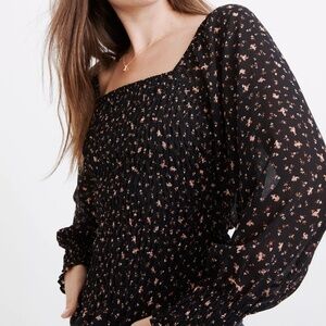 Madewell | (Re)sourced Georgette Lucie Bubble-Sleeve Smocked Top in Stem Scatter