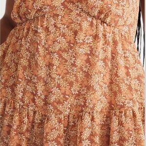Made of sustainable (Re)sourced recycled georgette in a vintage-y floral print, this midi dress has angular seaming at the bust, ruffled crossback sleeves and a voluminous tiered skirt. Perfect for parties, picnics, pretty much everything.
