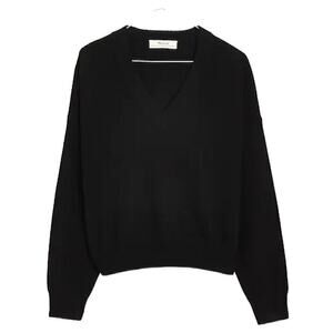 Madewell (Re)sponsible Sweater Cashmere Long Sleeve V-Neck Crop True Black NWT XS