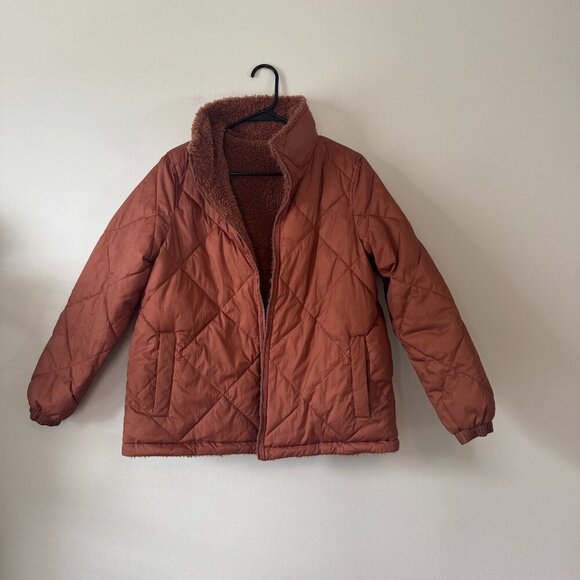 Madewell Reversible Sherpa Puffer Jacket in Warm Umber