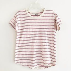 Madewell Rib Crewneck Tee Womens Size M Beige Jacquard Stripe Pullover