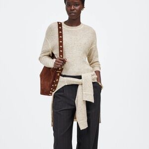 sweater has an oversize fit, drop shoulders and shiny cover-stitching throughout. Perfectly tuckable, it's an easy throw-on-and-go staple.