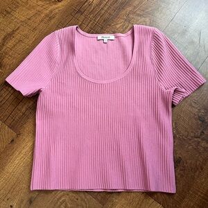 Chic ribbed tee with a scoop neckline. Perfect for casual outings.