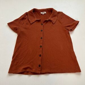 Madewell Ribbed Button-Front Collared Top Rust Orange Size Small
