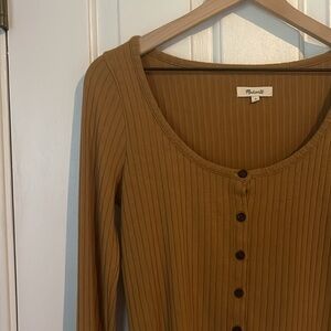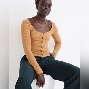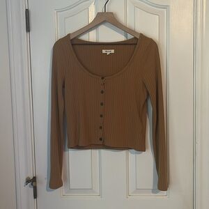 Madewell | Ribbed Cardigan Crop Tee Scoop Neck Button Down Size Medium Classic
