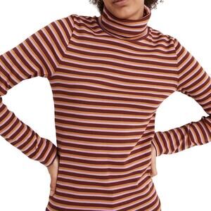 Madewell Ribbed Chilton Stripe Turtleneck T-Shirt Size Small Pullover Top Fall