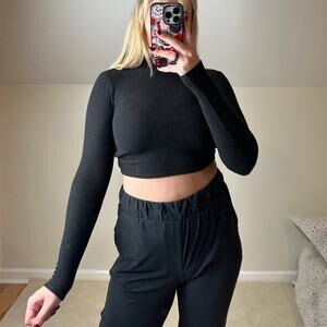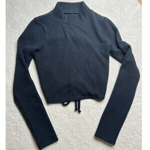 Madewell: Ribbed Cropped Keyhole Open Back Mock Neck Black Sweater
