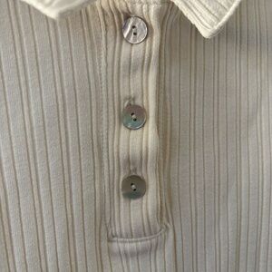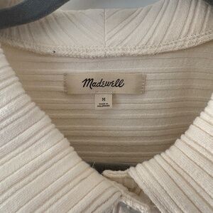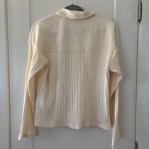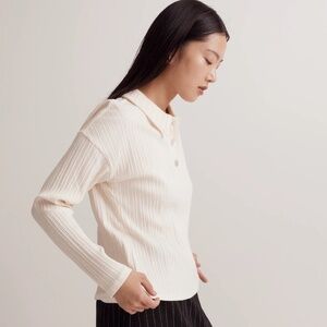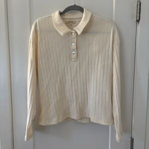 Madewell Ribbed Long Sleeve Polo Shirt Women's Medium Cream Boxy Preppy Academia