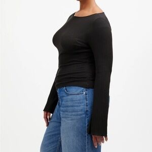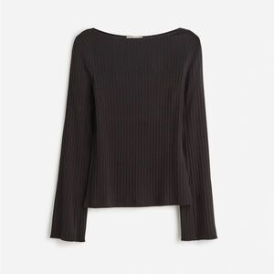 Madewell Ribbed Long-Sleeve Boatneck Top in Jet Black size M NWT NS805