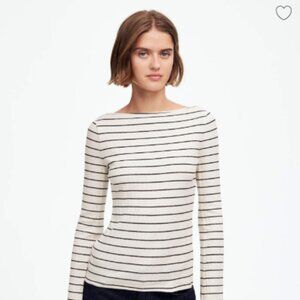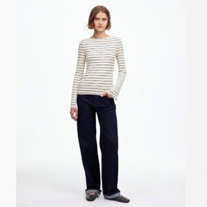 Madewell Ribbed Long-Sleeve Boatneck Top in Stripe NWOT