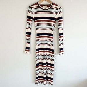 Madewell Ribbed Long-Sleeve Midi Dress in Multistripe XS EUC