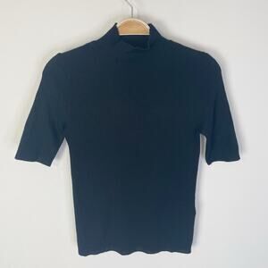 Madewell Ribbed Merino Wool Mockneck Sweater Tee True Black Small NS673 Minimal