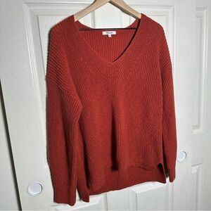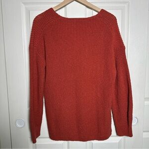 Madewell Ridgeton Large Pullover Sweater Burnt Orange Chunky Knit V-Neck Top