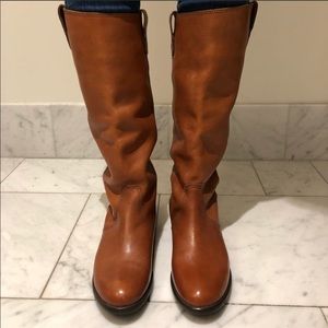 These gorgeous Madewell Archive 1937 riding boots are the perfect color for fall. These shoes are lightly worn, they just don’t fit over my calf.