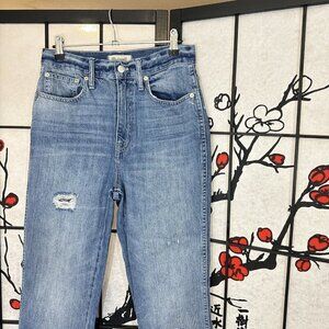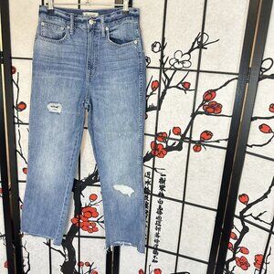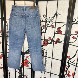 Madewell Rigid Demi Boot Crop Jean Size 26 Blue Mid Wash Raw Hem Distressed High Rise