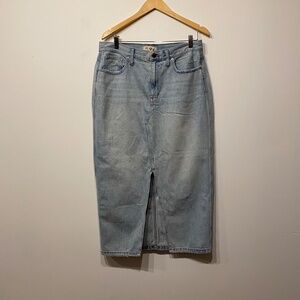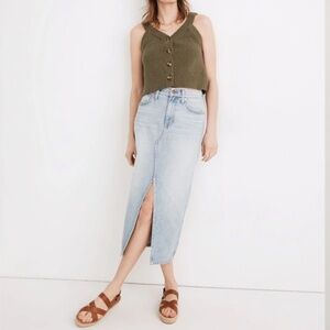 Madewell Rigid Denim A-Line Midi Skirt in Woodley Wash