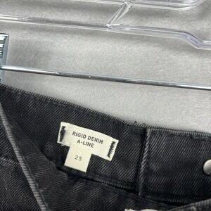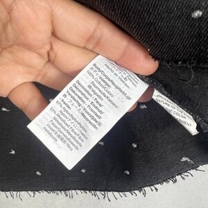 Madewell Rigid Denim A-line Skirt Womens 25 Black Mini Metalic Dots Edition, raw edge hem, side pockets and back pockets.