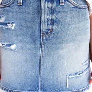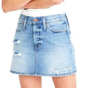 Madewell Rigid Denim Straight Distressed Mini Skirt --Rip And Repair Edition