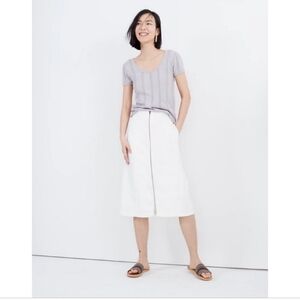 Madewell Rigid Denim Zip Midi Skirt in Tile White Size 25