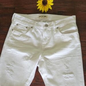 Madewell Rivet & Thread Distressed High Rise Boyjean In White 💗