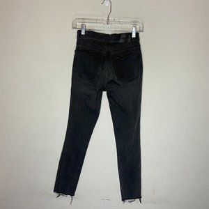 Madewell Roadtripper Skinny Jeans Womens 23 Black Distressed Fringe Raw Hem Pant