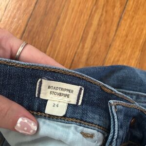 Chic dark blue denim jeans. Ideal for everyday style. Size 24, fit more like a 25 in my opinion. Only worn a handful of times, excellent condition.