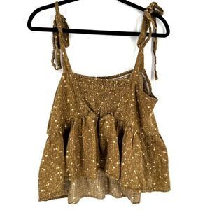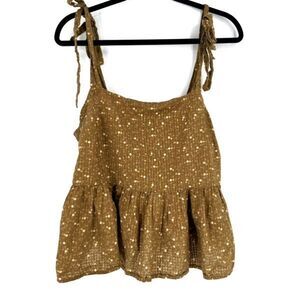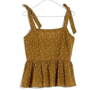 Madewell Rosalie Tie-Strap Top Daisy Stitch Yellow Floral Smocked Tank Size L