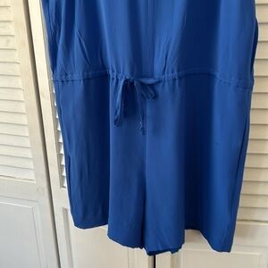 Madewell Petal Play 100% Silk Royal Blue Romper