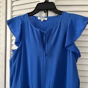 Madewell Royal Blue 100% Silk Shorts Romper Keyhole Back Flutter Sleeves XS