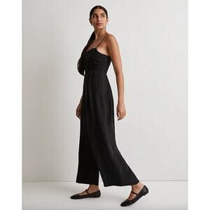 Madewell Ruched Crop Straight Leg Jumpsuit Black Minimalist Relaxed US 0 NWT