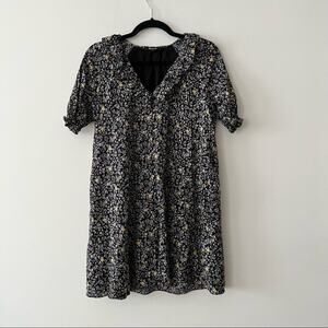 In good preowned condition. "Let loose in this trapeze-style mini with a ruffled collar and vintage-y covered buttons down the front. Made of a light-as-air (and sustainable) cotton blend in a delicate floral print, it's the perfect dress for those superhot days when clingy clothes just really aren't an option. Easy fit."