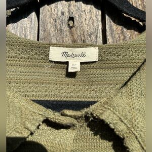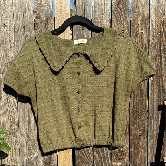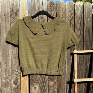 Adorable olive green collared knit sweater top. Buttons up and collar has a slight ruffle on edge. In excellent, near new condition. Perfect for fall.
