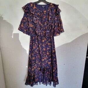 Madewell Ruffle Midi High Low Dress in Climbing Vine Blue Floral Size 00