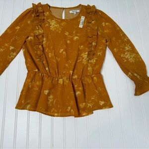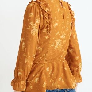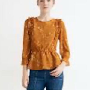 Madewell Ruffle Shoulder Peplum Top Tonal Botanical Rich Amber XS NEW 981