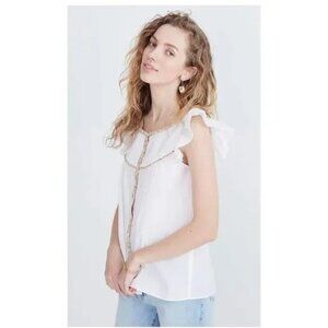 Madewell Ruffle Sleeve Bib Top White Solid Women’s Cotton Flutter