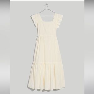 Madewell Ruffle Strap Tiered Midi Dress Textural Stripe NF850 Ivory