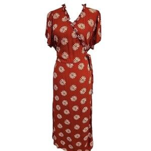 Madewell Ruffle-Edge Wrap Midi Dress Floral Daisy Daydream Orange Clay Size XL