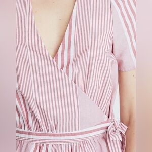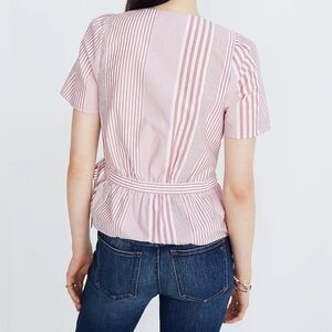 Madewell Ruffle-Hem Wrap Top in Stripe Mix Deep Crimson (rose pink). Size Extra Small. Madewell updated their beloved wrap top with bold stripes and a feminine—and just a touch longer—ruffled hem. Play up the '70s vibes with high-rise flares.