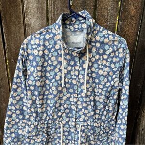 Madewell Ruffle-Neck Anorak Rain Jacket In French Floral Blue Moon Sz XS