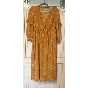 Madewell Ruffle-Sleeve Button-Front Dress in Golden Tonal Botanical Size 4