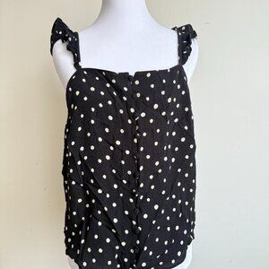 Madewell Ruffle-Strap Cami Top Black White Polka Dot Size Small NWOT